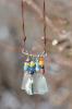 Timeless Collection with African Trade BeadsThe “Timeless” collection by Tish Knight includes an array of unique gems: Ancient Roman glass, Circle Blue Studios bluglass and African trade beads complete with precious metals and leather. Every necklace is a one-of-a-kind piece with a story of another time, along with the modern mission of Tish Knight’s bluglass.Roman glass pieces are iridescent gems that are actual glass created during the Roman Empire, 2000 years ago! Pieces are found all over the ancient empire but most commonly the eastern Mediterranean area. The unique and beautiful colors are formed over time by chemical reactions between the components in the glass and the surrounding earth in which it was buried for so long. African trade beads are decorative glass beads that were made in Venice, Bohemia and Holland and were used by European explorers when trade routes to Africa were established. This type of currency was common between the 16th and 20th centuries. Authentic African trade beads will show signs of age and imperfection from the era they were made and the years of being traded. The photo shown is the actual piece for sale. Hangs 28 inches. |